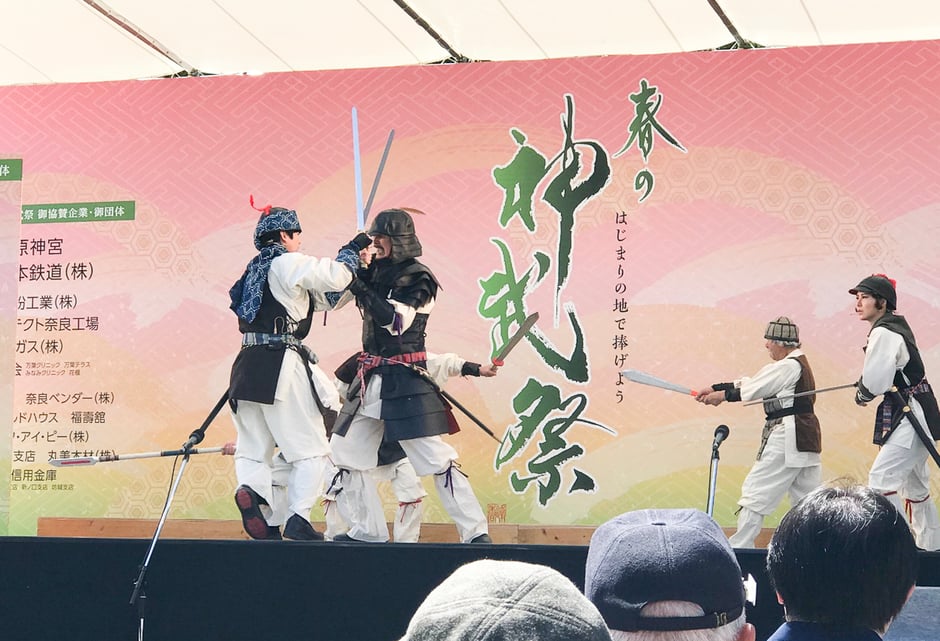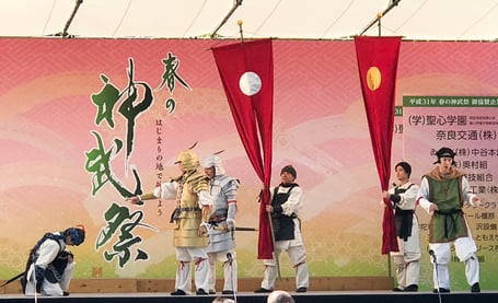 あすか劇団 時空 · 2019/04/21 神武祭のオープニングで「神武東遷」を上演 2019年4月20日、橿原神宮で行われた「神武祭」のオープニングで「神武東遷」を上演しました。 たくさんの方々にご来場いただき、ありがとうございました。 あすか劇団「時空」の詳細は、こちらをご覧ください。 tagPlaceholderカテゴリ: