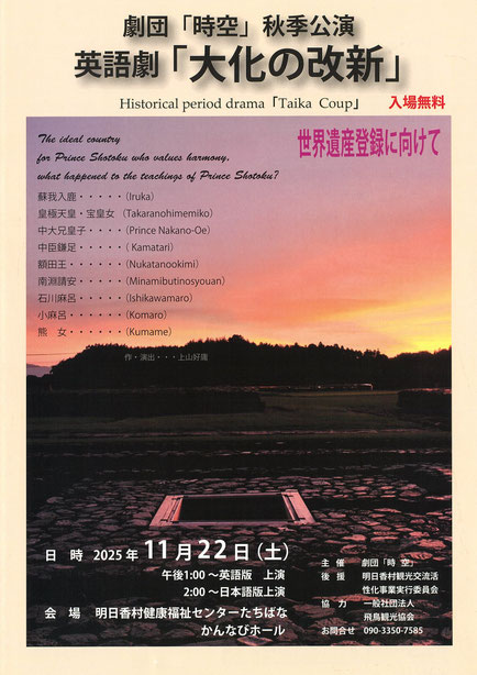 蘇我入鹿が起こした歴史的クーデターの物語を、全編にわたって英語で上演します。